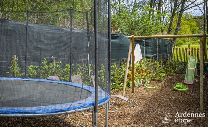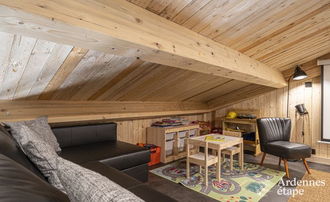 De chalet beschikt over 2 slaapkamers en 2 badkamers, ideaal voor een gezin of een enkele vrienden. Er zijn ook 2 honden welkom, zodat je je trouwe viervoeters niet thuis hoeft te laten. De woonkamer is uitgerust met een houtkachel, wat zorgt voor een knusse en warme sfeer. Voor de kinderen is er een speciale speelruimte binnen en een speeltuin buiten met een schommelglijbaan en trampoline.