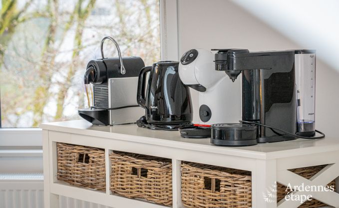 Koffiezetapparaat Senseo, Koffiezetapparaat Senseo, Inductiekookplaat x 4, Oven x 1, Magnetron (microgolf) x 1, Koelkast x 1, Diepvriezer, Afwasmachine x 1, Tafel x 1, Kruk, Stofzuiger, Waterkoker, Broodrooster, Raclette Stofzuiger , Waterkoker , Broodrooster , Raclette