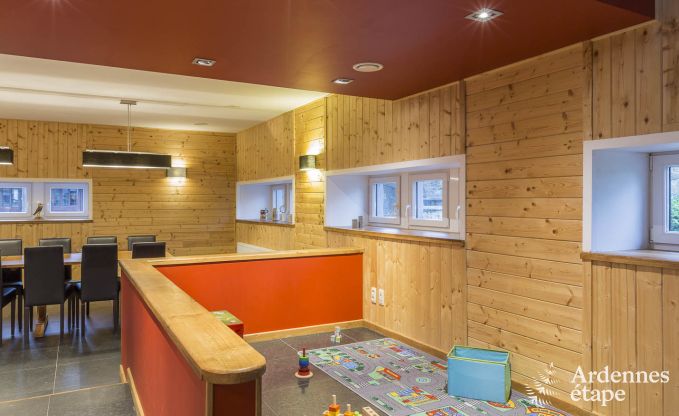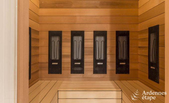Wat een immens genoegen ook om te profiteren van de aanwezige ontspanningsfaciliteiten: wellnessruimte met sauna en infraroodcabine, ruime speelzaal met biljart- en kickertafel, speelhoek voor de kleine kinderen, bar die op de onderverdieping werd ingericht voor het proeven van wijn of bier…Al deze zaken zullen bijdragen tot een uiterst fijne vakantie.