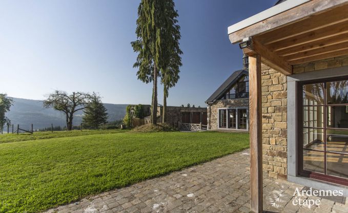 Volledig gerenoveerd vakantiehuis voor 22 personen met zicht op de Stoumontvallei. Uitzonderlijke ligging, sauna, infraroodcabine en alle comfort.