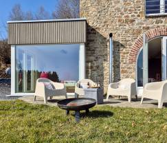 Kinderen kunnen zich uitleven in de ruime tuin, terwijl volwassenen genieten van het panoramische uitzicht vanaf het terras. De woning beschikt ook over een beveiligde fietsenstalling en een fietsreinigingskit, ideaal voor fietsers die de omgeving willen verkennen.