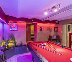 Deze groepsaccommodatie voor 12 personen is ideaal voor een vakantie met de familie want het beschikt over verschillende ontspanningsruimtes voor alle leeftijden. Liefhebbers van welzijn kunnen genieten van het binnenzwembad dat het hele jaar door wordt verwarmd. Daarnaast is er nog een sauna en een buitenjacuzzi. De jongeren genieten op hun beurt van een mooie speelkamer met biljarttafel en voetbaltafel. Bovendien kunnen ze in de tuin petanque spelen, schommelen en badmintonnen. Geen tijd dus om je te vervelen in deze bijzondere vakantiewoning, die bovendien heel praktische en goed ingerichte kamers biedt. De perfect uitgeruste keuken kijkt uit op de grote eetkamer, die prachtig ingericht en zeer gezellig is. Een beetje verder is er een zithoek met comfortabele zetels. Hier kan je aangename avonden doorbrengen met de familie of met een groep vrienden. Ten slotte staan er voor jouw optimale comfort 4 slaapkamers en 4 badkamers ter beschikking.