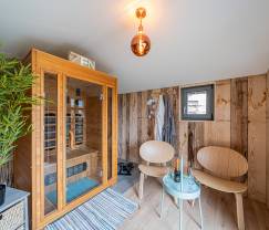 Maar dat is nog niet alles! Deze accommodatie beschikt ook over een eigen infraroodsauna, ideaal om te ontspannen na een dag fietsen in de omgeving. En als je graag buiten bent, zul je de privétuin en het terras zeker waarderen, compleet met barbecue voor gezellige zomeravonden.