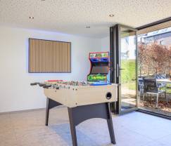 Voor je hier binnenstapt, ben je al helemaal in vakantiesfeer. Je wordt verwelkomd door het klateren van een authentieke waterfontein voor de voordeur van dit charmante vakantiehuis voor 5 personen. Aan de voorzijde kijk je uit op een authentiek, geklasseerd pleintje dat één en al rust en kalmte uitademt. En aan de achterzijde op de heuvels en de boomgaarden van Herve. Zoveel is duidelijk: hier is de hectiek van het moderne leven ver weg. Dit betekent zeker niet dat het je hier aan modern comfort zal ontbreken. Je vakantiewoning werd prachtig gerenoveerd en is stijlvol en eigentijds ingericht. Zo behield de kelderverdieping zijn authentieke gewelfde plafond en transformeerde het tot een trendy salon met een onweerstaanbare uitstraling. Je beschikt over 3 gezellige, moderne slaapkamers en 2 badkamers. Op het uiteinde van je 50 m² grote tuin staat een gebouwtje dat dienst doet als speelruimte, met voetbaltafel, darts en een arcade spelconsole. Voor je speelhuisje heb je een terrasje waar je lekker kan barbecueën. Voorts nodigt de tuin ook uit om elkaar uit te dagen tot een spelletje badminton. En op 300 m van je huis zullen de kinderen tot hun vreugde een prachtige speeltuin ontdekken met een houten speelkasteel en een zandbak, terwijl jij van aan de picknicktafel geniet van het magnifieke uitzicht op de natuuromgeving en de kerktoren van het pittoreske dorpje.