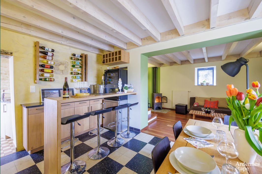 Deze charmante vakantiewoning uit 1790, vlak bij de rivier La Chiers (meteen ook de grens met Frankrijk), straalt authenticiteit en gezelligheid uit. Nestel je na een goedgevulde dag in de zetel dicht bij het vuur of klink op de mooie herinneringen aan de bar in de eetkamer. Onze tip? Op plaatselijke markten scoor je heerlijke lokale producten. Orval, berucht voor zijn heerlijk bier en lekkere kaas, is niet ver! Ook buiten word je uitgenodigd om te genieten: op het zonnige terras met okerkleurige gevels waan je je in de Franse Provence.