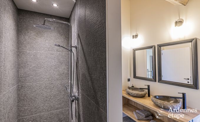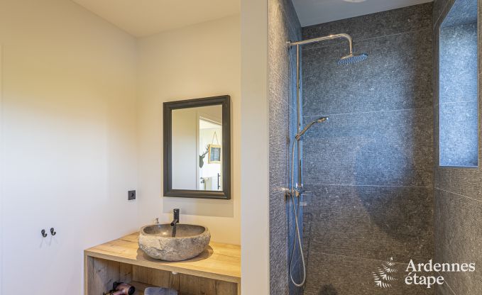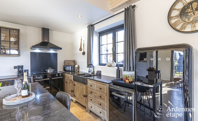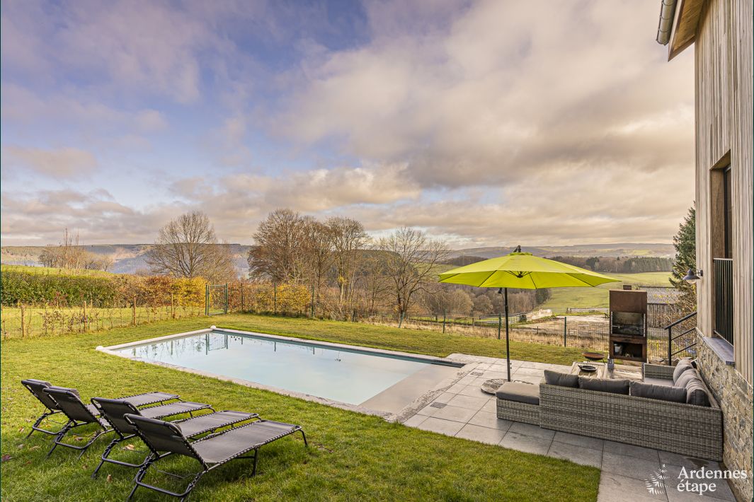 Heb je zin om je familie en/of vrienden nog eens samen te brengen? Dit vakantiehuis is er de perfecte plek voor! De knusse, hedendaagse zithoek, de moderne keuken met rustieke vibe en de sfeervolle eetkamer vloeien naadloos in elkaar over. Resultaat: een extra uitnodigende leefruimte waar je kan meegenieten van alle hapjes en gezelligheid terwijl je in de keuken lekker experimenteert met heerlijke streekproducten, maar ook gewoon relaxt kan loungen bij het haardvuur. Onze favoriet? Het terras met adembenemend zicht over de vallei en het prachtige zwembad met cosy zithoek. Je beschikt bovendien over een ruige barbecue, ideaal voor gezellige (zomer)avonden. Ook van de wellnessvoorzieningen – een indoor infraroodcabine en outdoor jacuzzi – zijn we fan!