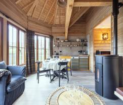 De woning beschikt over 2 comfortabele slaapkamers en 2 badkamers, perfect voor een gezin of een groep vrienden. De gezellige woonkamer met houtpelletkachel zorgt voor warme avonden, zelfs in de koudste maanden. De keuken is volledig uitgerust, zodat je heerlijke maaltijden kunt bereiden.