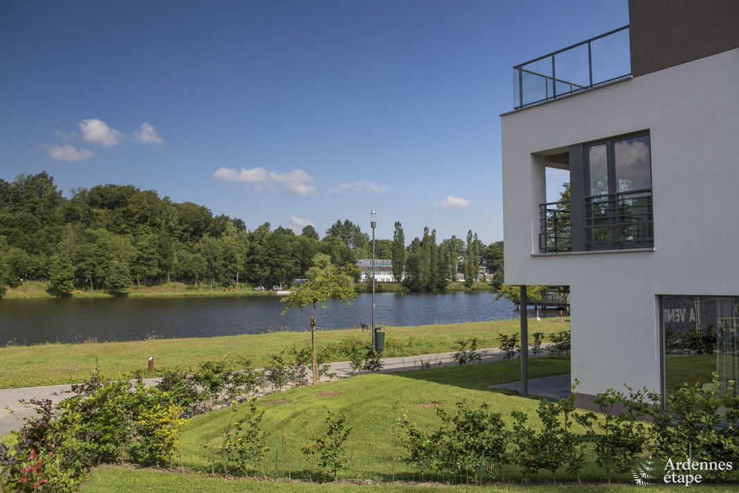 Deze luxueuze gîte grenst aan andere appartementen en heeft een oppervlakte van 78 m². Het appartement beschikt over 2 slaapkamers met een hedendaagse inrichting. Diezelfde sfeer vind je ook terug in de badkamer die is uitgerust met een bad. De zithoek is ruim en heeft veel lichtinval dankzij de grote ramen. Deze leefruimte geeft uit op de eetkamer en de uitgeruste keuken. De witte designmeubelen in Scandinavische stijl geven dit appartement een elegante toets. Deze kleur gaat perfect samen met de sobere kleur van de muren. De gîte voor 4 personen straalt bovendien een gezellige en warme sfeer uit dankzij de houten elementen. Vanuit de living bereik je het terras met uitzicht op het meer. Bewonder de zonsopgang en zonsondergang in dit groene landschap dat mooi zou staan op een postkaart.