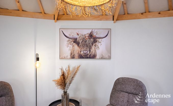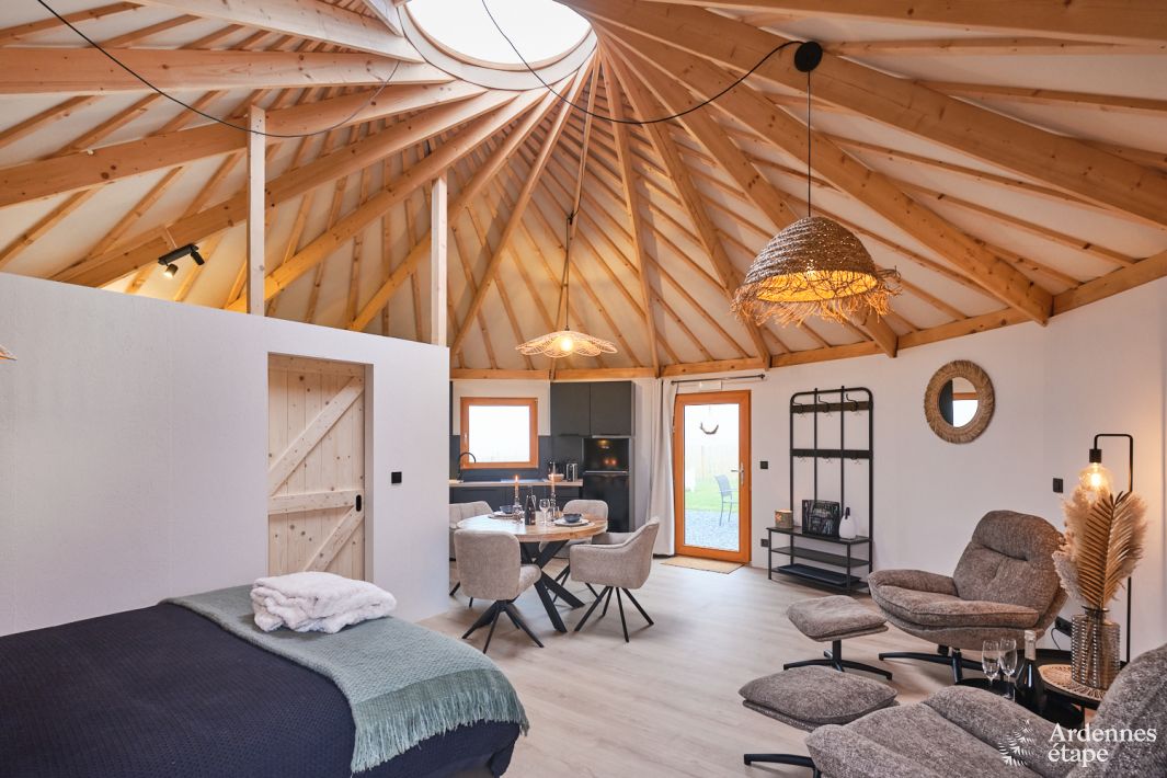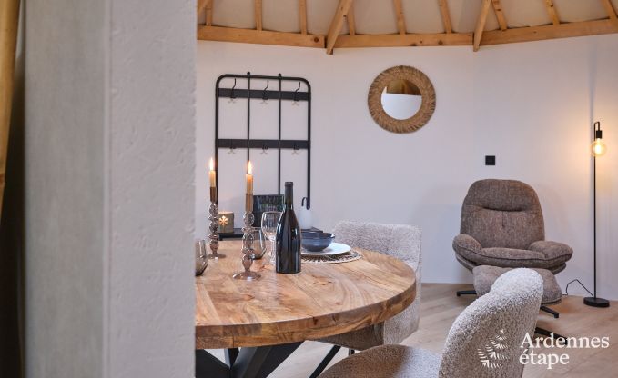 Welkom in deze unieke yurt  in Vielsalm , perfect voor een romantisch uitje met z'n tweeën. Deze yurt  werd splinternieuw gebouwd in 2024 , en biedt je een bijzondere ervaring met zijn ronde architectuur en een glazen opening in het dak, waardoor je 's nachts de sterren kunt bewonderen. Omringd door velden, ontsnap je hier rustig in de natuur, terwijl je toch...