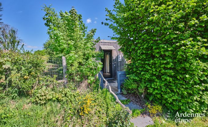 Wat deze accommodatie echt bijzonder maakt, is de aanwezigheid van een privéjacuzzi in een apart bijgebouw, waar je in alle rust kunt ontspannen. Daarnaast is er een houtpelletkachel die zorgt voor een gezellige warmte, perfect voor knusse avonden. Buiten is er een privétuin en het privéterras met comfortabel tuinmeubilair, waar je kan genieten van het uitzicht en de rust van de omgeving. Deze tiny house ligt in een rustige straat zonder doorgaand verkeer, ideaal om helemaal tot rust te komen en te genieten van quality time samen. Bovendien is het vertrekpunt van verschillende wandelingen vlakbij, zodat je de prachtige natuur van de Ardennen gemakkelijk kan verkennen.