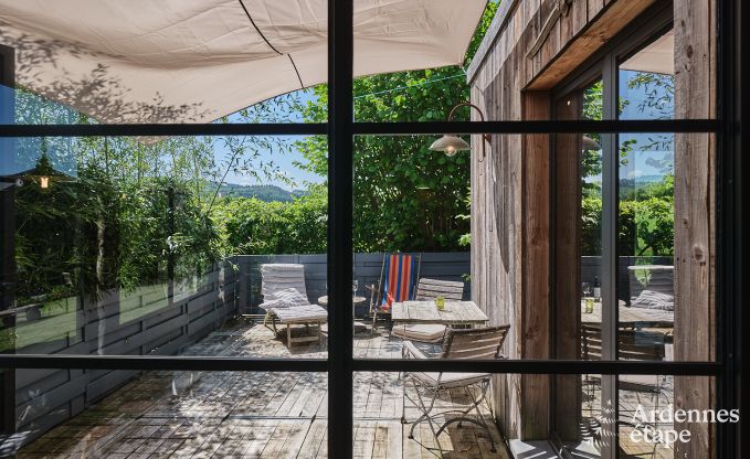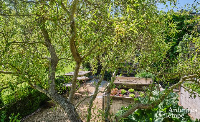 Wat deze accommodatie echt bijzonder maakt, is de aanwezigheid van een privéjacuzzi in een apart bijgebouw, waar je in alle rust kunt ontspannen. Daarnaast is er een houtpelletkachel die zorgt voor een gezellige warmte, perfect voor knusse avonden. Buiten is er een privétuin en het privéterras met comfortabel tuinmeubilair, waar je kan genieten van het uitzicht en de rust van de omgeving. Deze tiny house ligt in een rustige straat zonder doorgaand verkeer, ideaal om helemaal tot rust te komen en te genieten van quality time samen. Bovendien is het vertrekpunt van verschillende wandelingen vlakbij, zodat je de prachtige natuur van de Ardennen gemakkelijk kan verkennen.