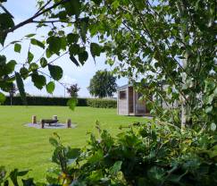 De woonwagen is gevestigd op een groot boomrijk terrein. De accommodatie is gelegen in een dorp waar je dan ook zicht op hebt.