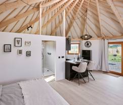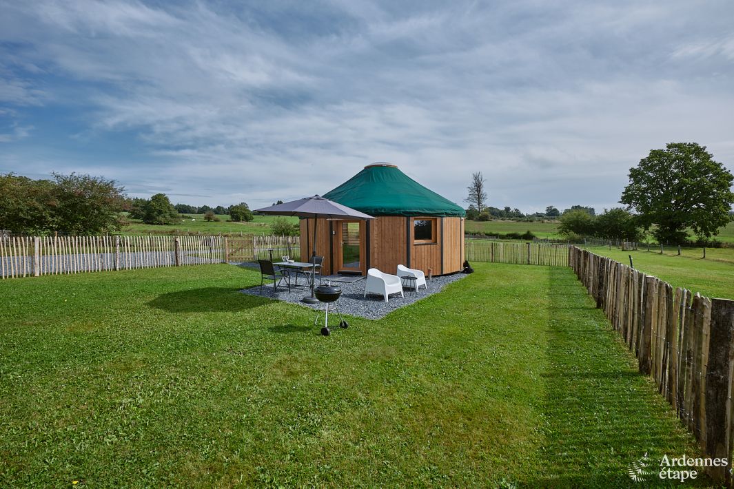 Deze unieke yurt voor 2 personen ligt in de prachtige natuur van Vielsalm , omringd door uitgestrekte velden. Perfect voor een romantisch verblijf met je geliefde én je trouwe viervoeter, die hier ook van harte welkom is. De yurt, gebouwd in 2025, combineert traditionele architectuur met een bijzondere ronde vorm en een glazen dakopening die zorgt voor een unieke...