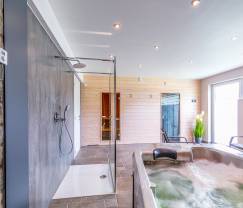 Sauna (4p), Jacuzzi (2p), Stoombad (4p), Douche x 1, Ligstoelen x 4