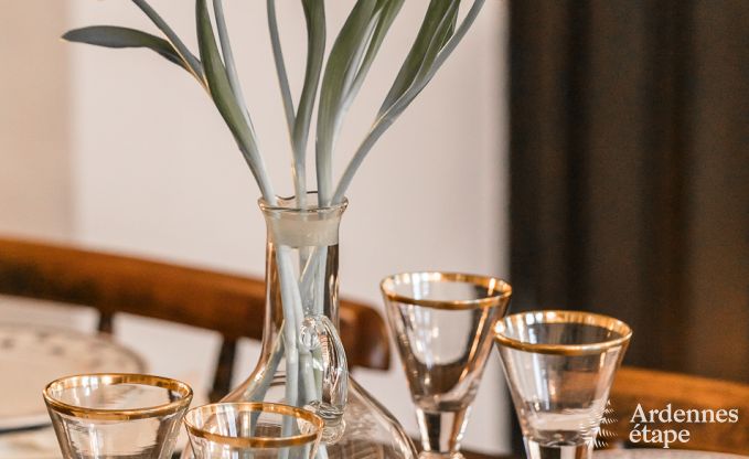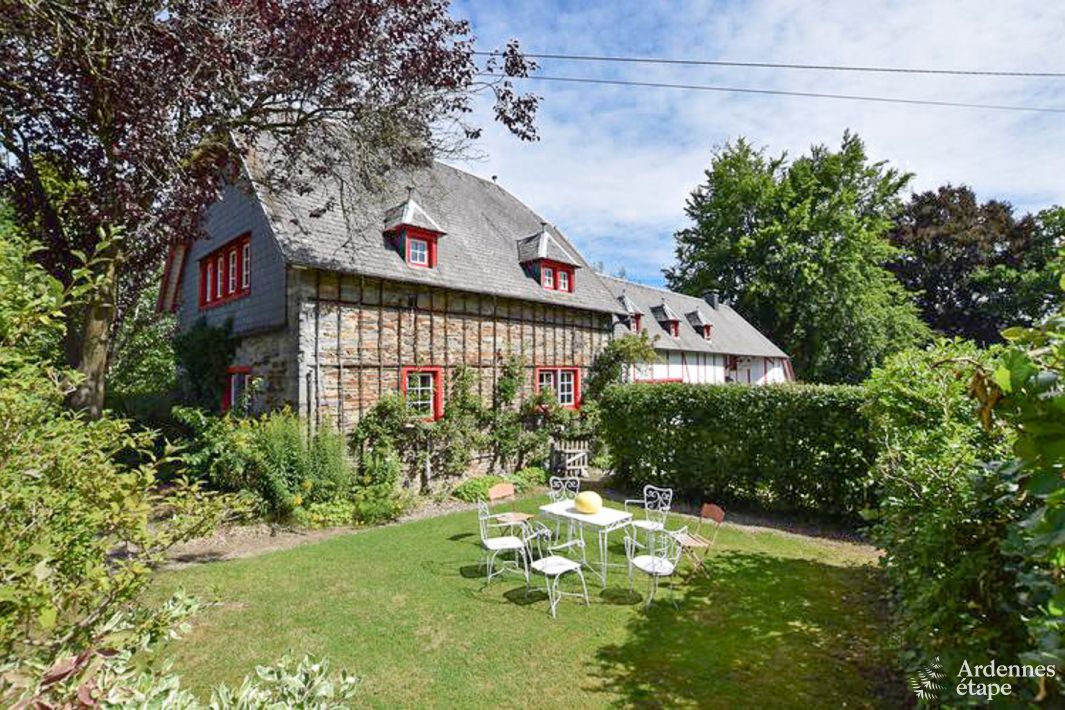 Karaktervol vakantiehuis met 6 slaapkamers en 3 badkamers. Met heel wat extra troeven: unieke stijl, pizzaoven, open haard, tuin, bos en rivier vlakbij ... De  elegante rustieke stijl , gerenoveerd antiek meubilair en open haard  bezorgen dit ruime 19e eeuwse halfvrijstaande vakantiehuis een warme sfeer. Alles werd gerenoveerd in 2017 en is perfect voor een verblijf...