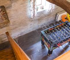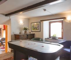 Veel ruimte, een verfijnde decoratie en extreem comfort, dat is wat je te wachten staat in deze 3-sterren groepsaccommodatie, die speciaal werd ingericht voor een verblijf met 27 personen. De rustieke elementen gaan heel goed samen met het sobere en elegante meubilair. In de ruime zithoek neem je plaats in een van de vele zetels of je geniet van de uitermate heldere veranda met zijn knusse meubelen in rotan en zijn enorme raam met zicht op de tuin. Liefhebbers van air hockey vinden hun gading in de tweede zithoek voor enkele onstuimige partijtjes nabij de schoorsteen, terwijl de kinderen terecht kunnen in de speelzaal om een van de vele beschikbare gezelschapsspelletjes te spelen of op de voetbaltafel te spelen! Geniet van de ruime keuken, die is uitgerust met 2 koelkasten, om al je gerechten klaar te maken. Of maak gebruik van het washok, heel handig als je in groep reist! Er zijn 9 slaapkamers (waarvan 2 met een eigen badkamer) en nog 2 bijkomende badkamers beschikbaar. Met een oppervlakte van 1200 m², een glijbaan, een schommel, een trampoline en een hut voor de kinderen, belooft de privétuin vele uren plezier buiten!