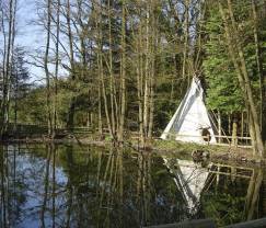 Een authentieke tipi wacht op jou achter in de tuin.
