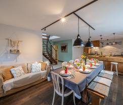 Een zeer goede ligging van het huis en een heel tof verblijf voor families. We misten wel een grote zetel in de woonkamer beneden en er waren te weinig stopcontacten. Er staat een leuke grote eettafel (wel nog te klein voor 12 personen) en een 2-zit wat te weinig is voor een groep van 12 personen. Een mooie verzorgde tuin en een grote keuken wat handig is als je met veel personen bent. Tip: meer info in een boekje voorzien in het huis zelf over het sorteren van afval en gebruik van de BBQ,....