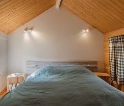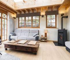 Het vakantiehuis beschikt over 2 comfortabele slaapkamers, waarvan een met een stapelbed en wastafel en 1 moderne badkamer met douche, perfect voor een ontspannen verblijf. Voor gezinnen met jonge kinderen is er op aanvraag een kinderbedje en een kinderstoel beschikbaar. De gezellige woonkamer is uitgerust met een houtpelletkachel, die een warme en uitnodigende sfeer creëert tijdens de koelere avonden. De keuken is volledig uitgerust, zodat je heerlijke maaltijden kunt bereiden om van te genieten in de eetkamer of op het privéterras.