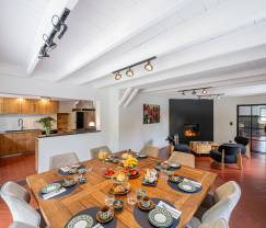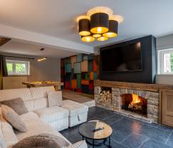 De twee woonkamers stralen allebei gezelligheid uit. De ene woonkamer (met houtkachel) sluit aan op de eetkamer, de andere beschikt over een open haard en een biljarttafel. Deze woning is ideaal voor liefhebbers van sport en spel: naast de biljarttafel zijn er ook een kickertafel en diverse gezelschapsspellen aanwezig.
