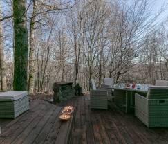 En zomer of winter, vergeet je verrekijker niet om het bosleven vanaf het terras te observeren.