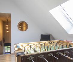 Wie dit sfeervol vakantiehuis vol hout en mooie contrasten binnenstapt, krijgt meteen zin om te cocoonen! De mooie open keuken is ideaal om lekker in te koken en gewoon gezellig te blijven babbelen. Nestel je nadien in de uitnodigende zetel om te klinken op de mooie herinneringen die jullie hier zullen maken. De kids? Die maak je blij met de kamer met stapelbedden en de aparte speelruimte met tafelvoetbalspel, een goedgevulde bibliotheek en heel wat gezelschapsspellen! Onze persoonlijke favoriet? Het prachtig (overdekt) terras met sauna en jacuzzi, ideaal om in alle seizoenen heerlijk te ontspannen en de perfecte plek voor een feestelijke barbecue.