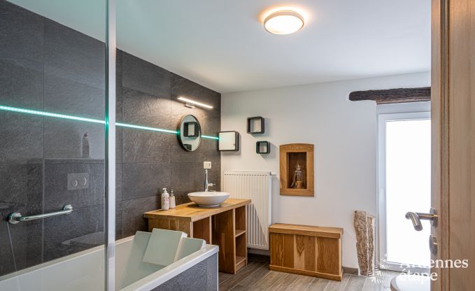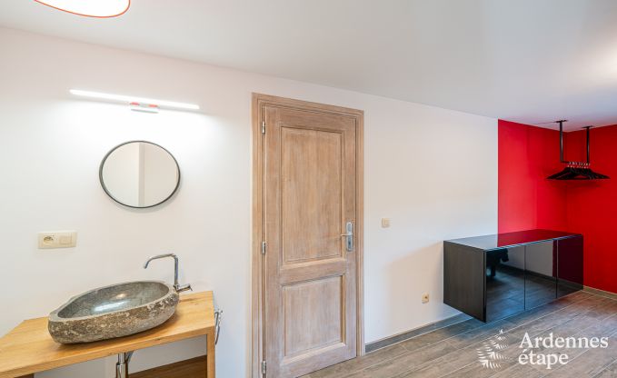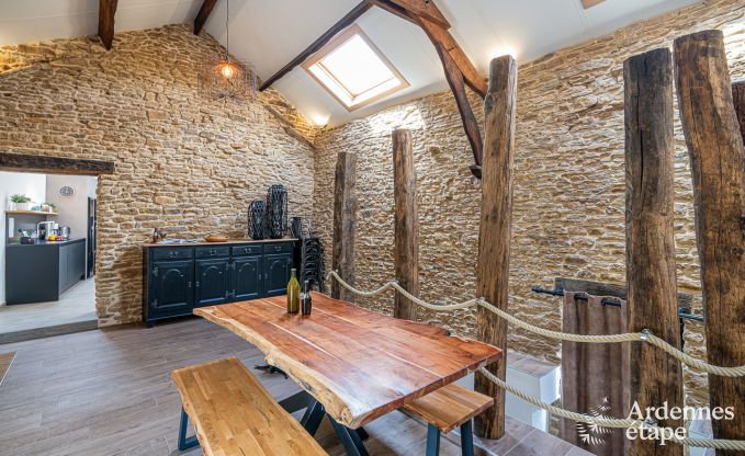 Superbe ancienne grange rénovée. Nous avons loué les 2 gîtes. Ils sont super bien équipés, en particulier au niveau des cuisines et des sanitaires. Rien à redire, on voit que le proprio a rénové ces bâtiments avec coeur et goût. Chouette jardin dès qu'un rayon de soleil pointe le bout de son nez. Bain nordique très appréciable.
