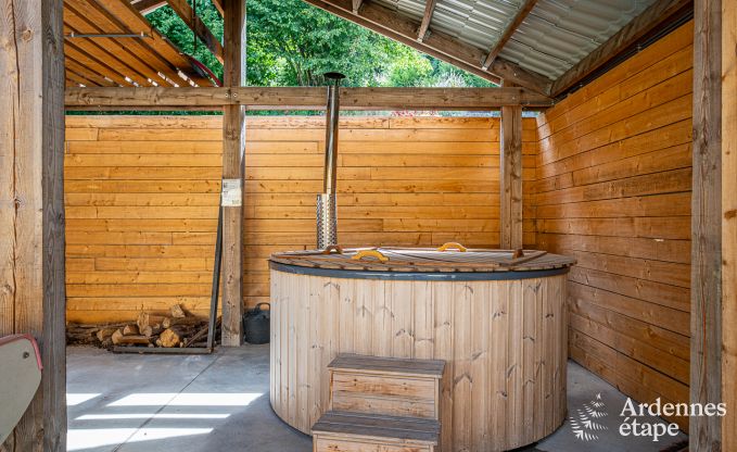 De woonkamer is uitgerust met een houtkachel, ideaal voor gezellige avonden rond het vuur. Voor entertainment is er een speelkamer met tafelvoetbal en gezelschapsspellen. Buiten vind je een privétuin met een terras, een barbecue en diverse speeltoestellen, een trampoline en een petanqueveld. En als kers op de taart is er een houten warmwaterbad waarin je heerlijk kunt ontspannen na een dag vol avonturen.