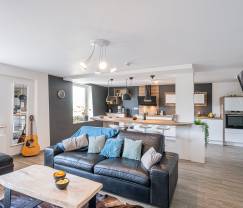 We verbleven met 8 volwassen&7 kinderen in de prachtig gerestaureerde schuur. De keuken is zeer modern&heeft uitgebreide apparatuur. De kamers&badkamers zijn net.De houtkachel biedt extra sfeer&warmte in huis. De mezaninne boven de living werd door de kinderen veelvuldig gebruikt als speelruimte en doordat deze in verbinding staat met de eetruimte/living heb je constant controle over de kids. De houtkachel hottub is ook zeer fijn. De eigenaar communiceert zeer duidelijk en geeft handige tips.