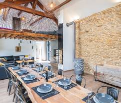 De woonkamer is uitgerust met een houtkachel, ideaal voor gezellige avonden. Voor entertainment is er een speelkamer met tafelvoetbal en een pingpongtafel. Buiten vind je een privétuin met speeltoestellen, een trampoline en een petanqueveld.