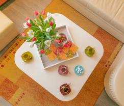 Mooi appartement. Zeer kleurrijk maar smaakvol ingericht.