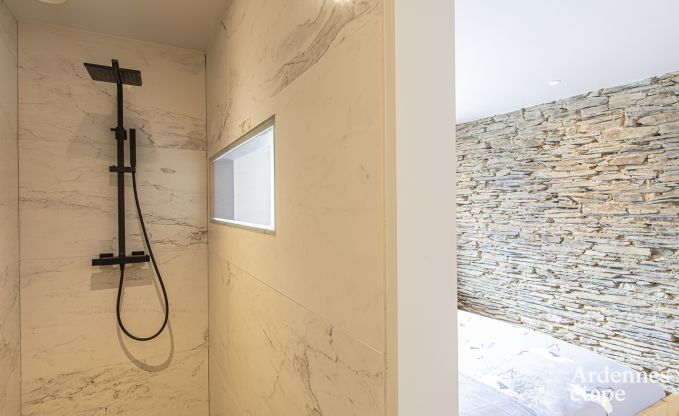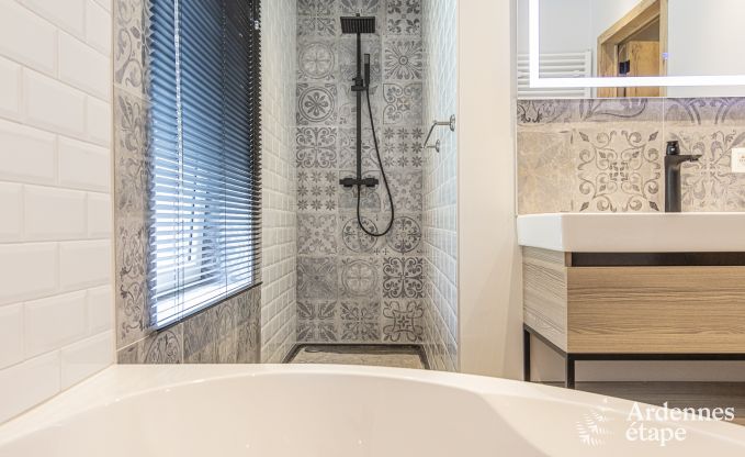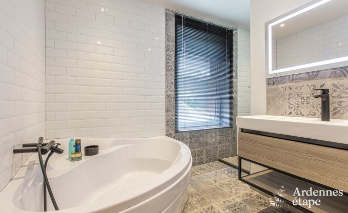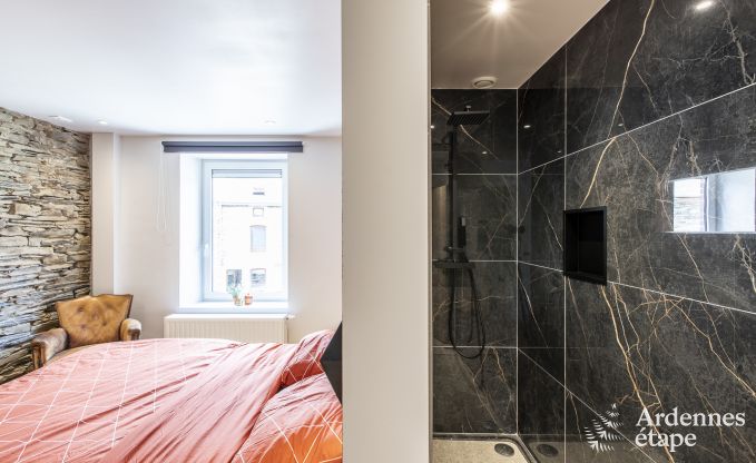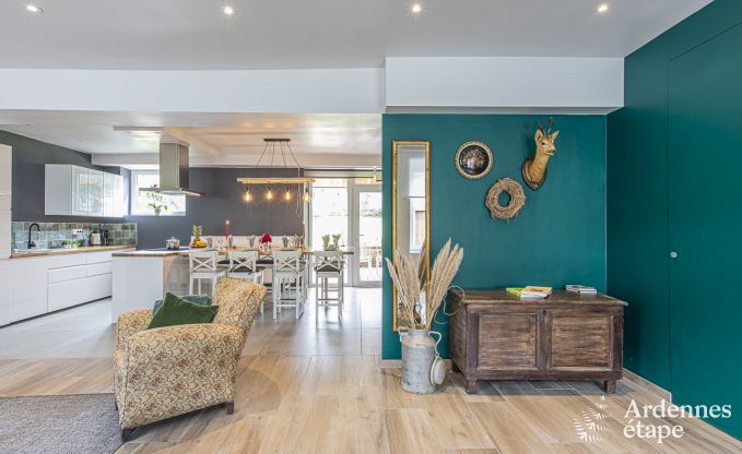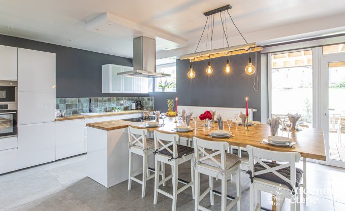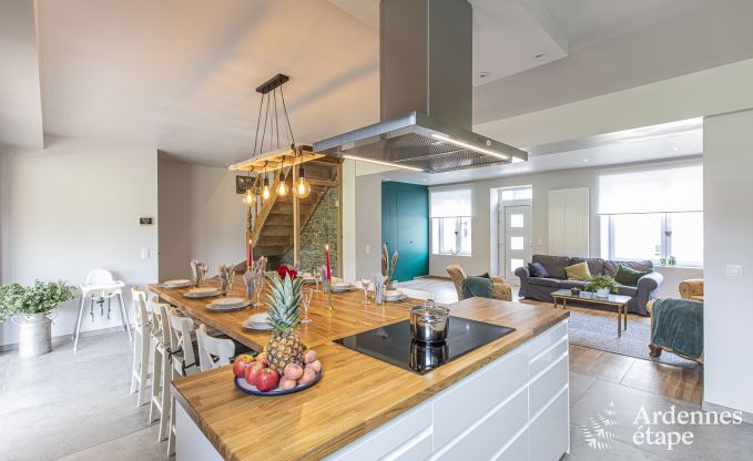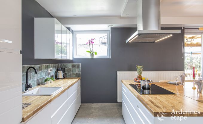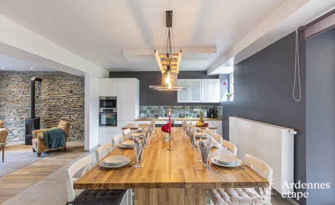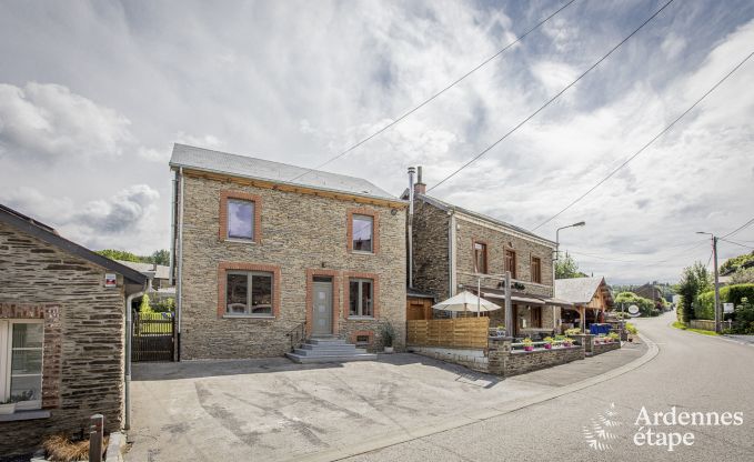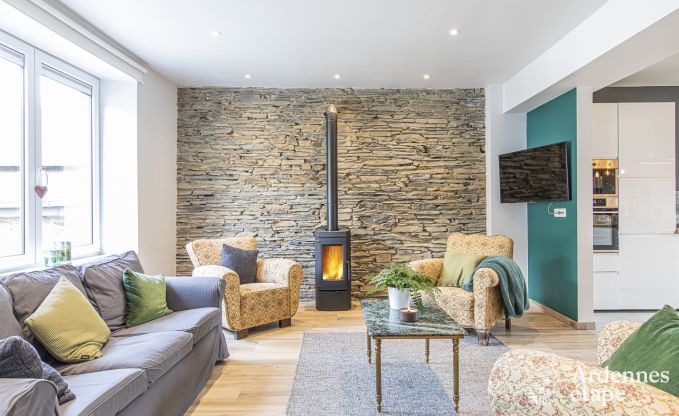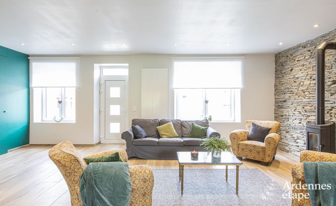 Ruime woning in het centrum van Alle-sur-Semois, vlak bij winkels en wandelroutes. Parkeerplaats voor 3 wagens. Binnenkom zonder hal maakt de living snel vuil. Living en houtkachel (vuil bij aankomst) zijn wat beperkt en de verwarming warmt traag op zelfs met kachel. Keuken is volledig maar onhandig ingericht met te lage kasten. Boven zijn praktische kamers, maar het felle automatische licht stoort ’s nachts. Grote tuin zonder uitzicht en een terras zonder namiddagzon. 2 WC's zijn wel praktisch.