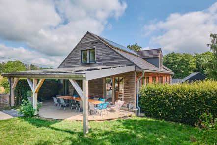 Sfeervolle, houten vakantiewoning voor tien personen, voorzien van barrel sauna en houtkachel, in Weismes. Ideaal vakantiehuis voor ieder seizoen.