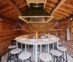 De eigenaar ontwierp en bouwde zelf een blokhut met een houtgestookte plancha waar je met 16 gasten uiterst gezellige gastronomische momenten kan beleven.