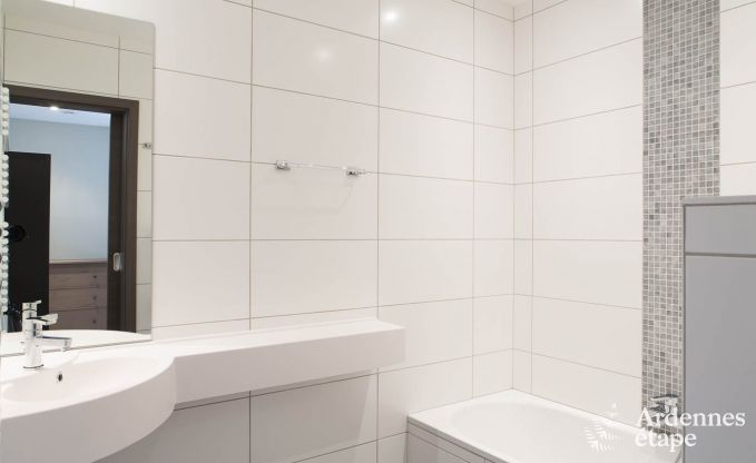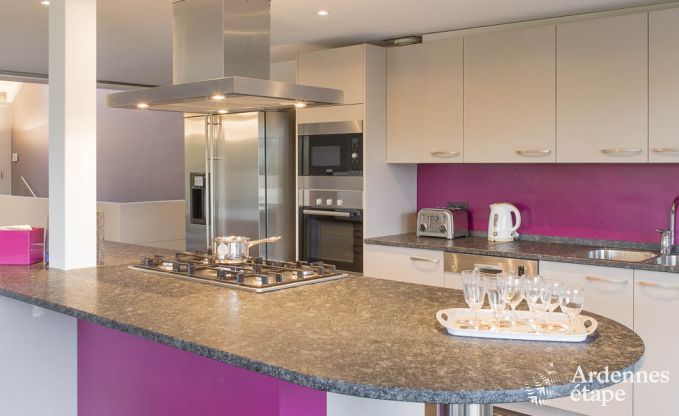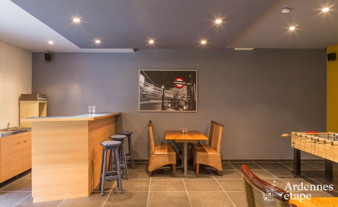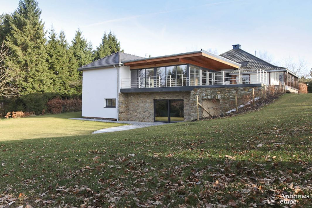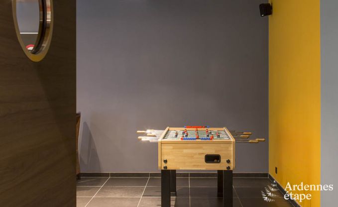 Deze villa bevindt zich op slechts 3 km van Weismes (Waimes in het Frans). Met een capaciteit van 14 personen, een moderne architectuur en een ruime oppervlakte van 380 m² biedt deze vakantiewoning een absoluut comfort. De sobere, maar elegante inrichting van de 7 tweepersoonsslaapkamers met eigen badkamer zorgt ervoor dat dit de ideale omgeving is om te ontspannen. Gun jezelf een moment van rust in de leeszaal, die zich op de tussenverdieping bevindt en waar je je laatste nieuwe literaire aanwinst kan verslinden. De speelzaal met bar en voetbaltafel is de ideale plaats om op het einde van de dag bijeen te komen voor waanzinnige feestjes. Maar ook je welzijn komt aan bod met een ontspanningsruimte die is uitgerust met een sauna en een jacuzzi voor volwassenen. In de privétuin van 250 m² met schommel, glijbaan en petanqueveld zullen de allerkleinsten enorm veel plezier beleven!
