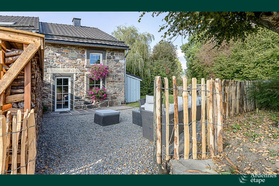 Onlangs gerenoveerd, knus vakantiehuisje voor 5 personen in Weismes, provincie Luik. Ondanks authentieke uitstraling is de woning modern ingericht. U wordt hartelijk ontvangen door de vriendelijke en behulpzame eigenaresse van het huisje. De grote, gezellige woonkeuken vormt het hart van het huis. Hier kunt u 's avonds heerlijk natafelen met de familie of bordpelletjes spelen. Voor het bereiden van een lekkere maaltijd is ruim voldoende keukenmateriaal aanwezig. Ook in de kleine, doch knusse woonkamer met houtkachel is het 's avonds heerlijk vertoeven. En voor de kinderen is er, grenzend aan de living, een super gezellige kleurrijke speelkamer ingericht, met onder meer enkele zitzakken, televisie, spelletjes en speelkleed. Op de eerste verdieping zijn drie aaneensluitende, gezellige slaapkamers gelegen. Tevens vindt u daar de badkamer.