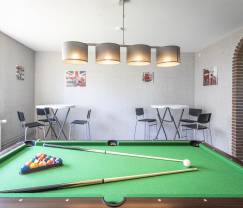 Nog nooit heb je tafels gezien die meer gezelligheid uitstralen! Je kunt je gemakkelijk voorstellen dat je rond een ervan zit. Dienbladen worden neergezet, glazen gaan van hand tot hand, flessen worden ontkurkt, kleine handjes vullen zich met stukjes worst en chips en er wordt gelachen. Dit is puur genieten. Biljart, tafelvoetbal, darts: jong en oud zijn er dol op! En de tijd vliegt in dit charmante 3,5-sterrenvakantiehuis. Waarschijnlijk te snel. Zoals altijd als je onbezorgd plezier hebt.