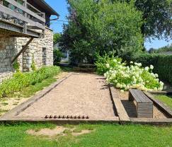 Dit rustig gelegen vakantiehuis is ideaal voor een geslaagde familievakantie in alle comfort en rust. De ouders beschikken over 4 gezellige slaapkamers voor 2 personen en de kinderen over een kamer met 2 stapelbedden met een speelruimte met onder meer een voetbaltafel en daarnaast nog een aparte speelplek. De volledig ingerichte keuken loopt over in de grote eetruimte met aansluitend een enorme zithoek met een houtkachel. Lekker tot rust komen na een dag vol activiteiten in de streek? Dat kan in de sauna of in de buitenjacuzzi. Of misschien verkies van een ontspannend partijtje petanque of wil je gezellig een boekje lezen op het terras of in de tuin?