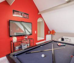 Super maison de vacances pour un grand groupe. L'annexe permet d'avoir plusieurs groupes distinct. Maison très propre, chambre grande, salle de bain top. Plein de choses à faire dans la maison ( Jacuzzi, sauna, piscine, fléchettes, billard). Tout est là pour passer un excellent wk voir semaine :)