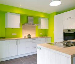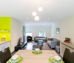 Dit vakantiehuis bestaat eigenlijk uit 2 verblijven. Er zijn dan ook 2 grote, gescheiden leefkamers (de ene op het gelijkvloers, de andere op de eerste verdieping) met daarin een zitruimte, een eetkamer en een uitgeruste keuken.