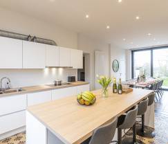 Deze gerenoveerde voormalige pastorie verwelkomt je met 6 slaapkamers, 6 eigen badkamers, speelkamer, vergaderzaal, tuin. En er zijn zelfs 2 honden welkom!