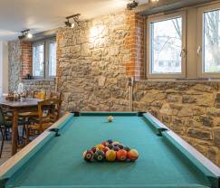 Maak tijd voor een rustige babbel bij de knisperende haard in de knusse zithoek, laat je vingers dansen over de pianotoetsen of geniet van het rustgevend zicht op het groen tijdens een uitgebreid ontbijt in de eetkamer met glazen koepel. Vind je “zomaar” reden genoeg om te klinken? Richting de gezellige bar om het glas te heffen op de fijne tijd die jullie hier beleven! Of misschien hebben jullie wel zin in een biljarttoernooi? De inzet: wie de volgende ochtend warme croissants van bij de dorpsbakkerij op tafel zet!