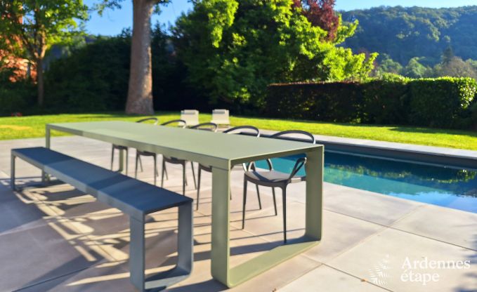 In de 1600 m2 grote tuin zal iedereen zijn hartje ophalen op de ligstoelen van het grote terras of in het verwarmde zwembad. Zin in een drankje? Handig: in het poolhouse staat een koelkast.